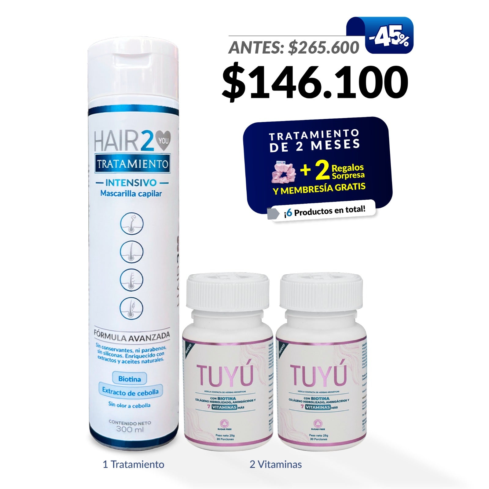 Transforma tu cabello con este tratamiento completo de Hair2You, diseñado para nutrir, fortalecer y dejar tu cabello libre de frizz.