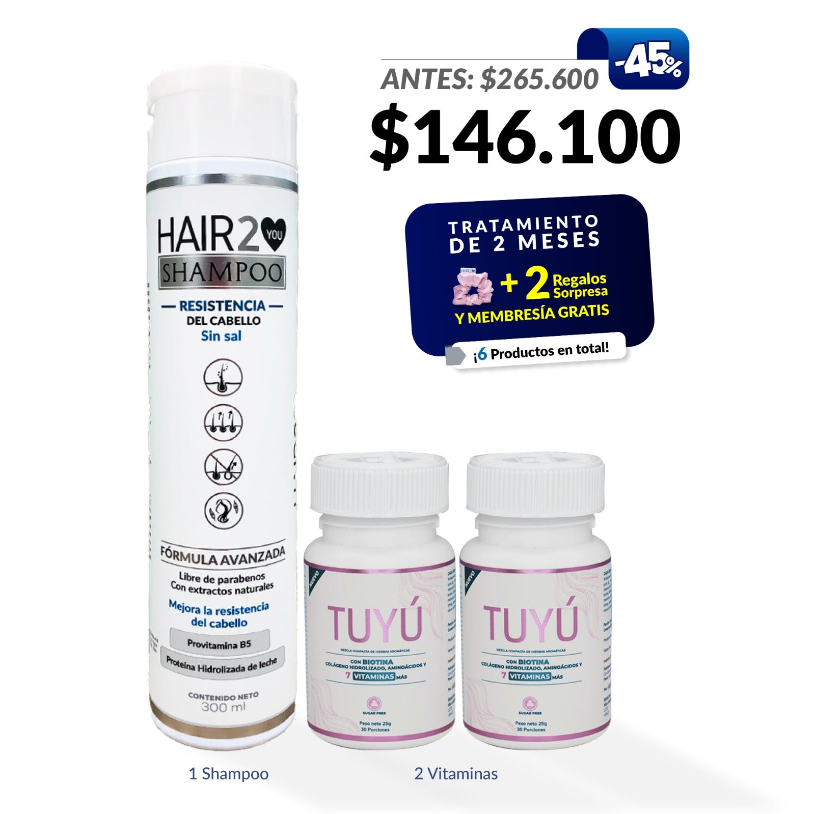 - 2 Vitaminas Tuyú + Shampoo Resistencia Anti-caída Sin sal