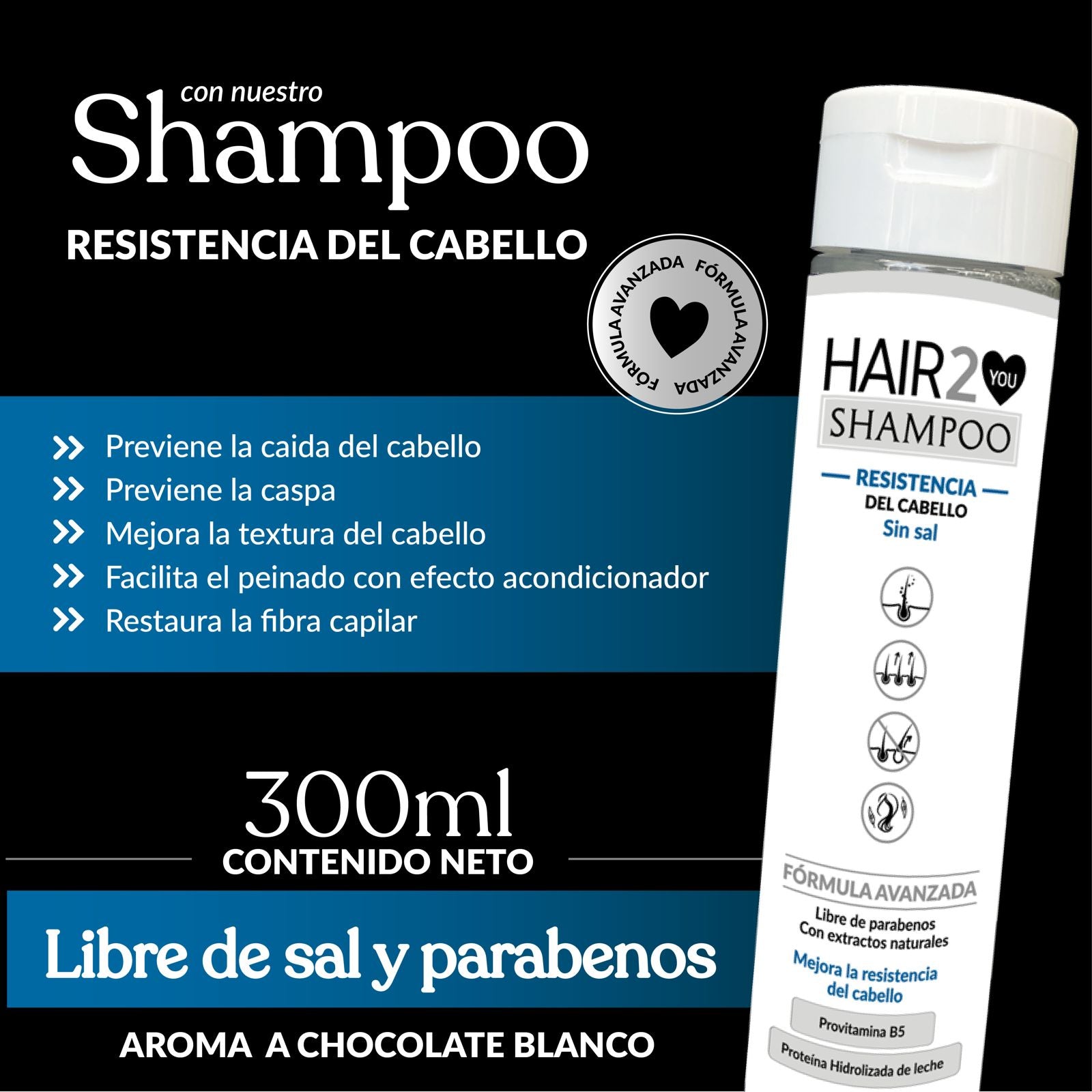 Es anticaída, previene la caspa, tiene efecto acondicionador y elimina el frizz. ¡Y lo mejor es que huele delicioso a chocolate blanco! Tiene provitamina B5 y proteínas hidrolizadas que fortalecen cada hebra y dejan tu cabello increíblemente suave. Si quieres un cabello suave, manejable y sin caída, este shampoo es lo máximo. 😍