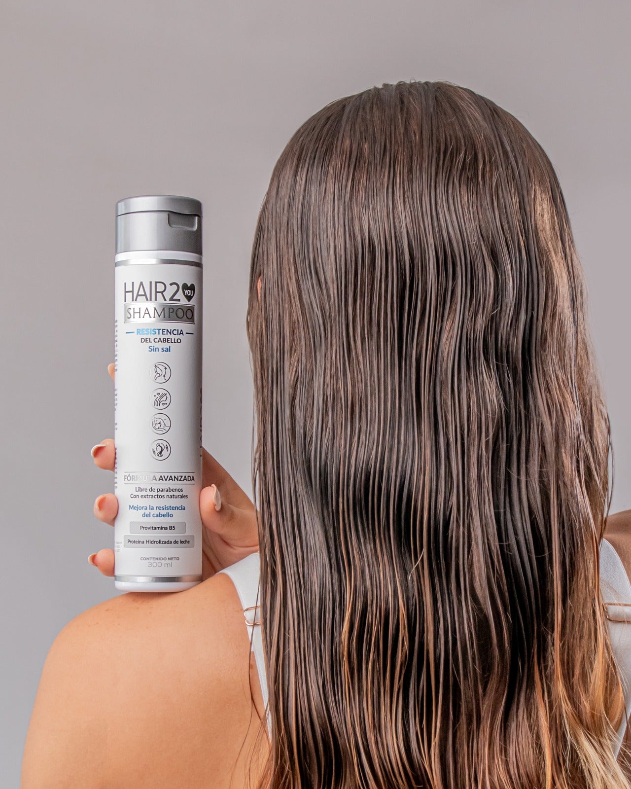 - Shampoo Resistencia: limpia a profundidad, controla la grasa y fortalece la raíz, preparando el cuero cabelludo para que los activos hagan efecto.